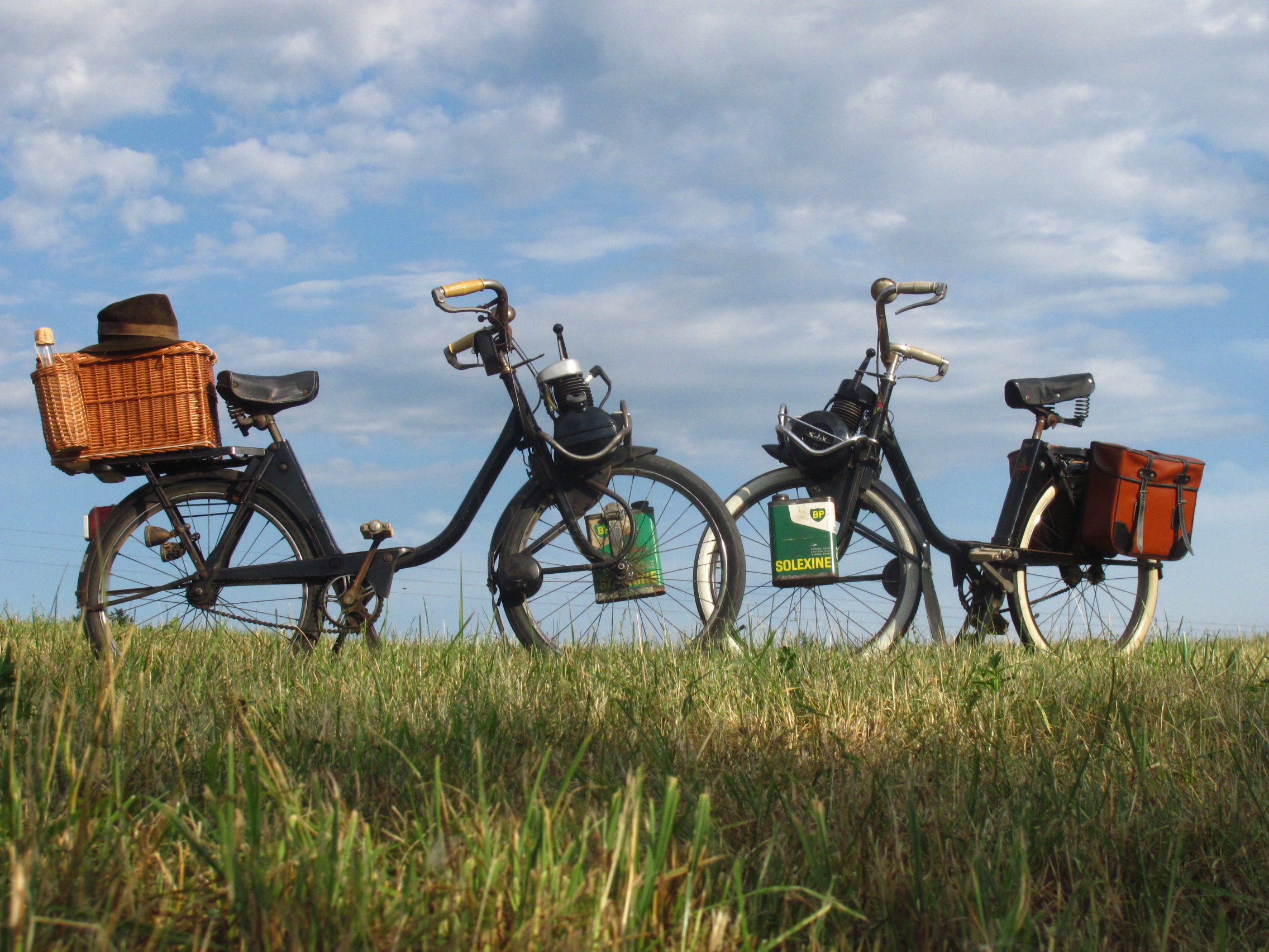 Focení francouzských modelek (velosolexek) Anastázie a Klotyldy u Baťova kanálu.