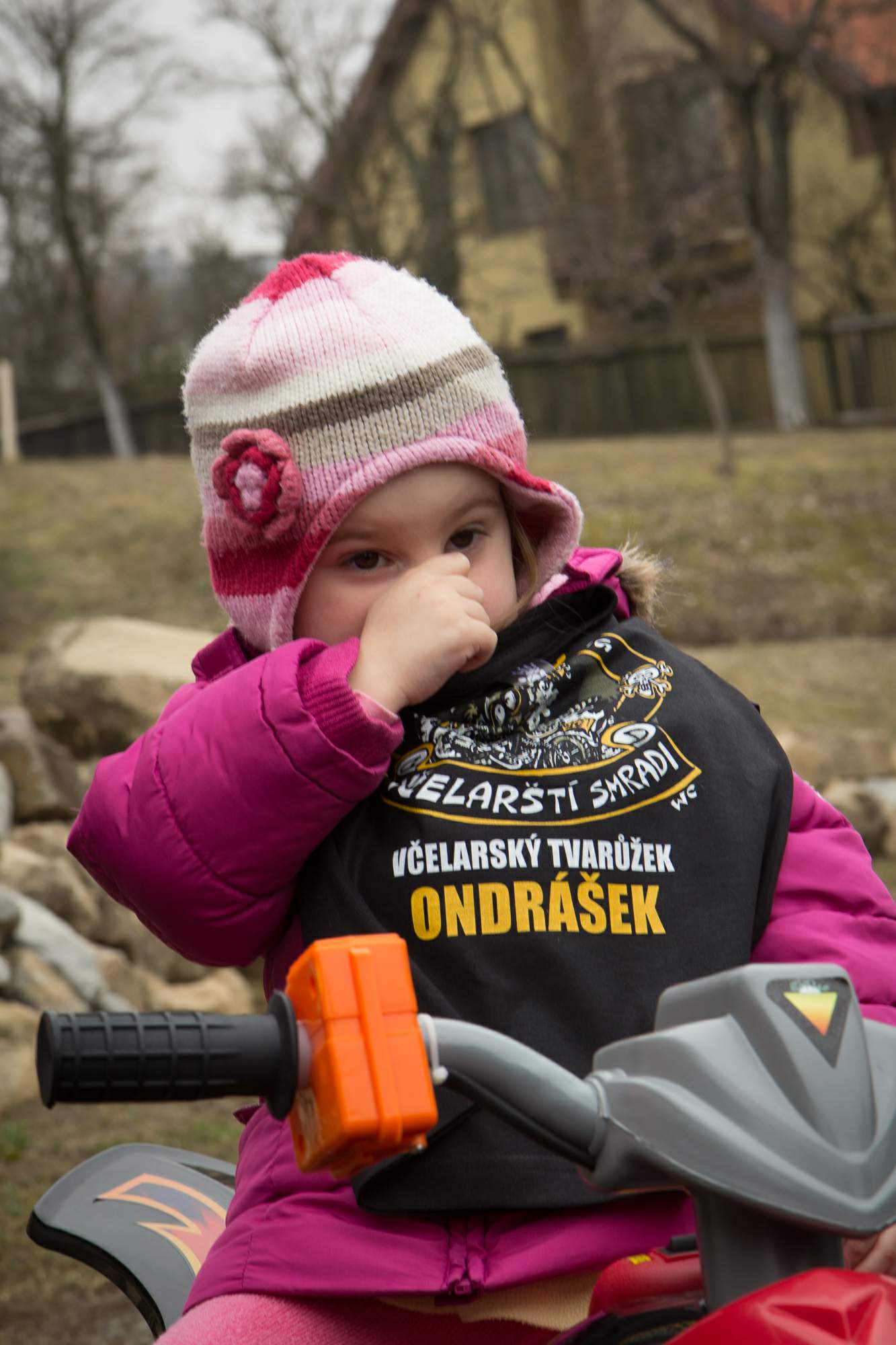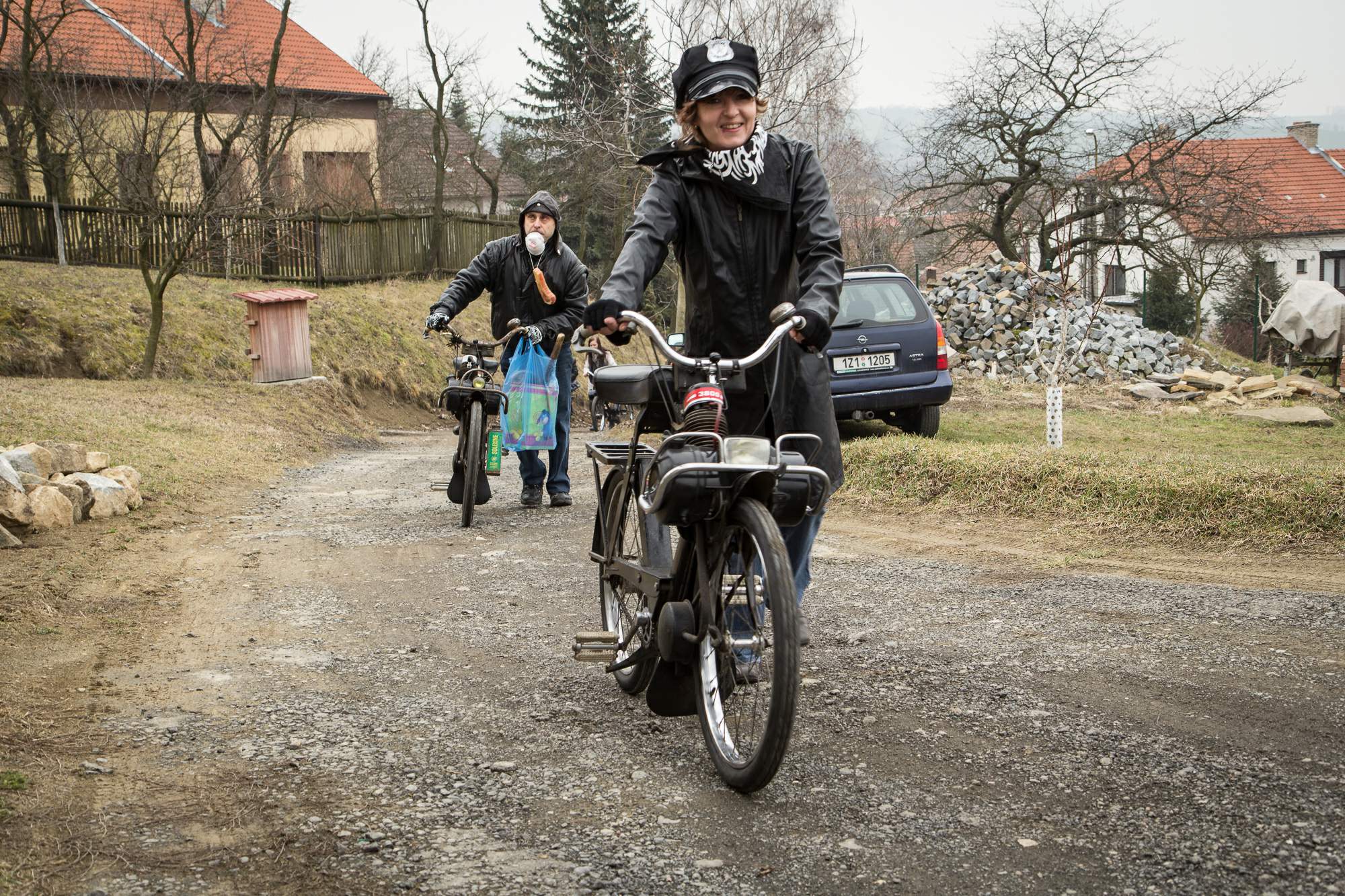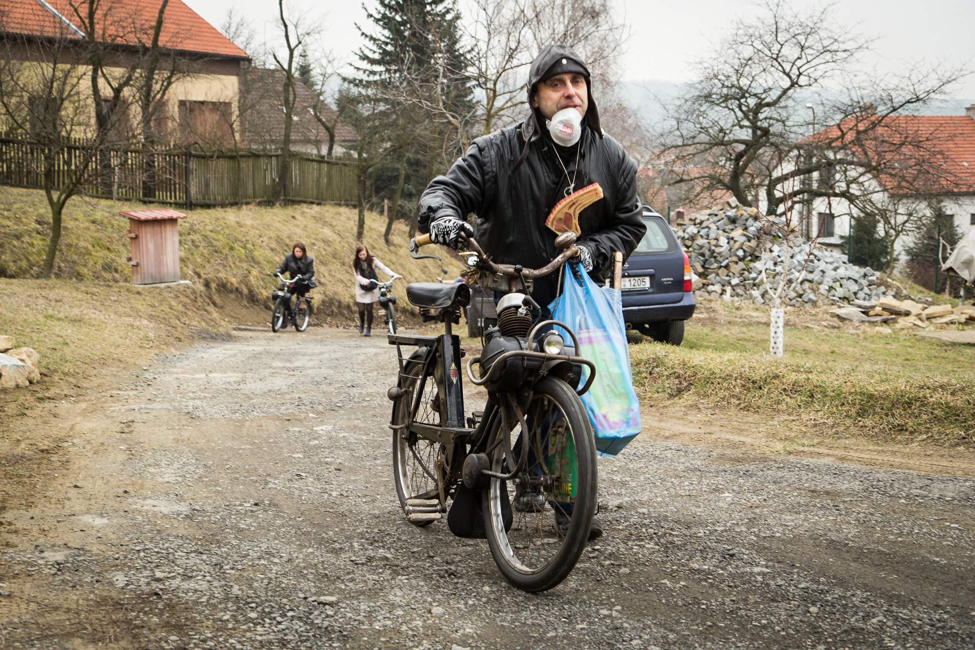Ondrášek Křemeček pokřtěn na člena motorkářského gangu Včelarských smradů na Včelarského tvarůžka – WC 47. Titulován zároveň na následníka prezidenta Plečkařů… FOTO: Marti Heleho Šuranský, IK