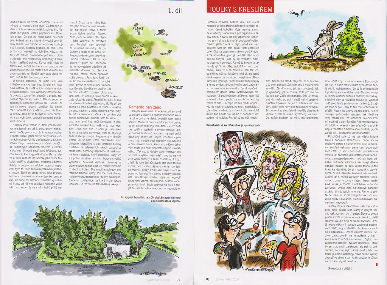 …před jesenickým zámkem potkávám jakéhosi muže. Zjevil se přede mnou jako přízrak. Modré a ošuntělé vytahané tepláky prozrazují, že bude asi domácí. Nakrátko vystříhaná hlava, od níž mu odstávají nápadně velké uši, prozrazuje, že se s ním holič příliš nemazlil. Snaží se mi něco říct, ale jeho zmatená slova se mění jen na nějaké ječivé a těžko srozumitelné výkřiky. Nevím, čeho jsem se zalekl dřív. Jestli jeho vzhledu, či hlasitých gest. Po chvíli jsem pochopil, že je úplně neškodný. Je postižený a snaží se mi něco říct. Rozpoutáváme spolu takový netradiční rozhovor. „Jak jsi tady dlouho?“ ptám se, pochopiv, že je obyvatelem zdejšího zámeckého domova pro přestárlé. Na mou otázku začne opakovat stále dokola: „Furt, furt, furt!“ Je mi ho líto, ale nedávám to na sobě znát, prý se to nedělá, prý tím toho postiženého člověka jen urážíte. „Je tu moc krásně!“ pronesu. „Ano, ano, ano, ano…!“ opakuje stále dokola a ukazuje rukou do údolí. Přemýšlím, jestli tu krásu kolem vnímá teď tak stejně tak jako já? Ale při pohledu do jeho prostoduché tváře si myslím, že ano, nadšení z něho doslova prýští. Chytá mě za rameno a začíná mě po něm přátelsky poplácávat. Udělal jsem to samé. „…ano, ano, ano! Ano, můj kamaráde, z jeseneckého zámku! Ano, máš to tu moc krásné!“ „Ano, ano, ano…“ opakuje stále dokola on, a na jeho usměvavé tváři s objevuje řada zkažených zubů Pozorujeme v němém úžasu jak se nám v tom překrásném údolí objevuje nádražíčko s tratí, protáhlé budovy družstva, na zelenkavých lukách pasoucí se stádo koní, domečky nepravidelně seskládané kolem potoka, který obestupují řady vrb a z přítmí do větru tančících borovic stydlivě vystupující bělounká kaplička. Přátelsky se držíme kolem ramen a už jen mlčky vnímáme to všechno kolem. Dva rozdílné pohledy, dva rozdílné zrakové vjemy…
