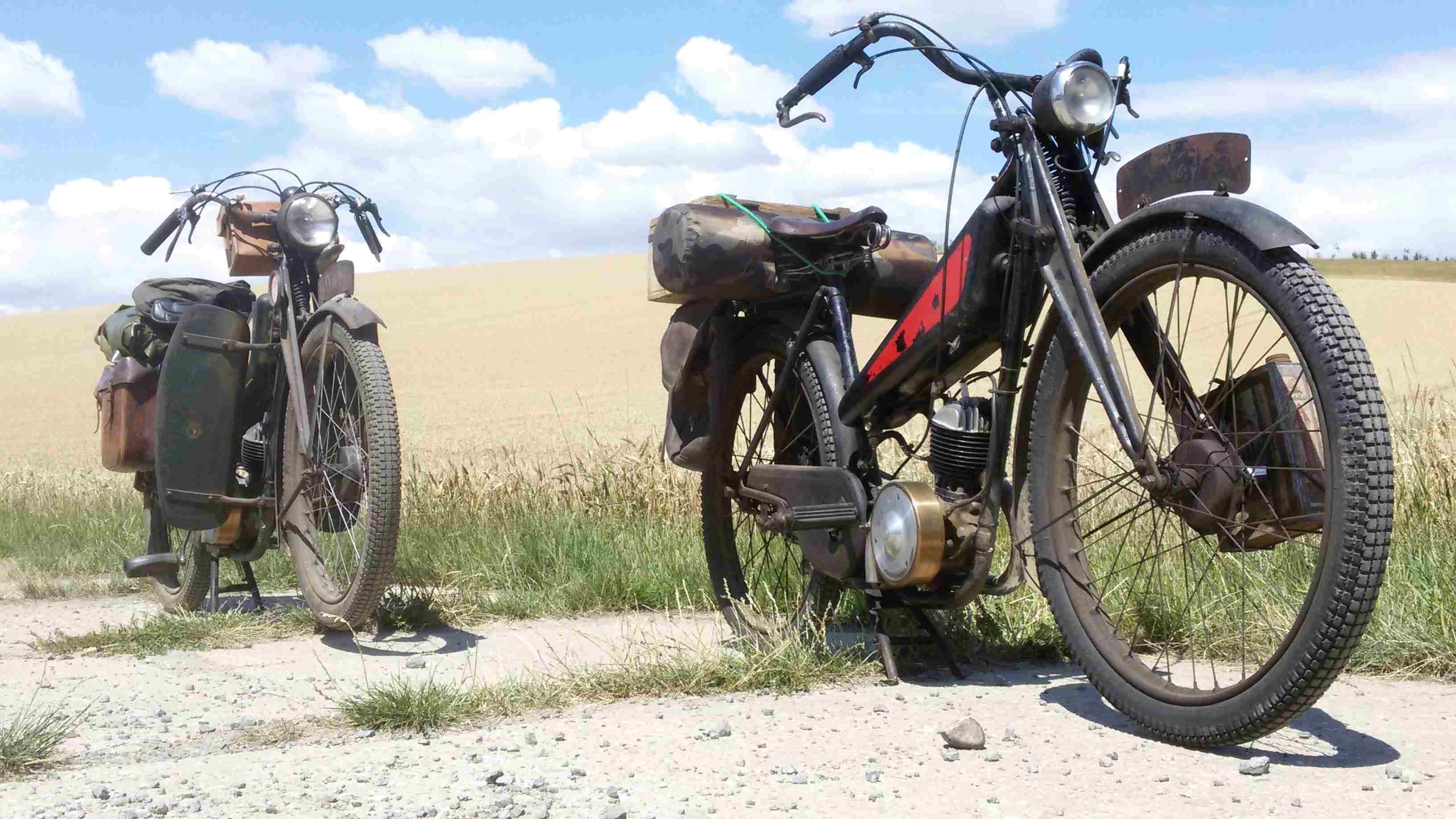 Včelarští Smradi na starých anglických motokolech krajinou buchlovských hor.