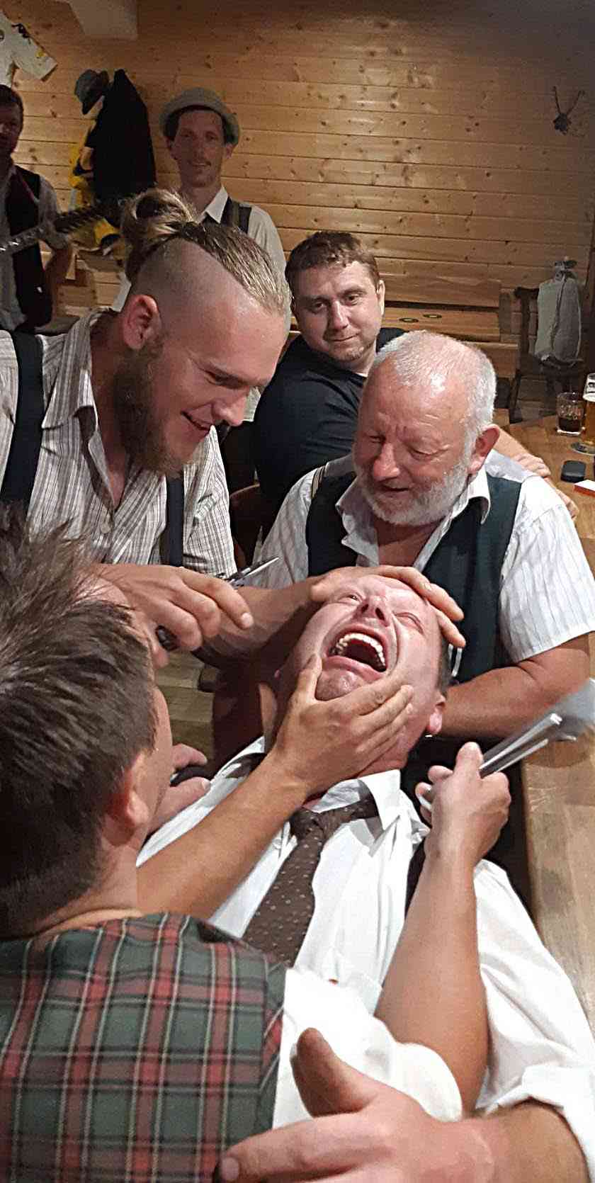 a tlupa krásně upravených gentlemananú v sáčkách a bílých košulách,