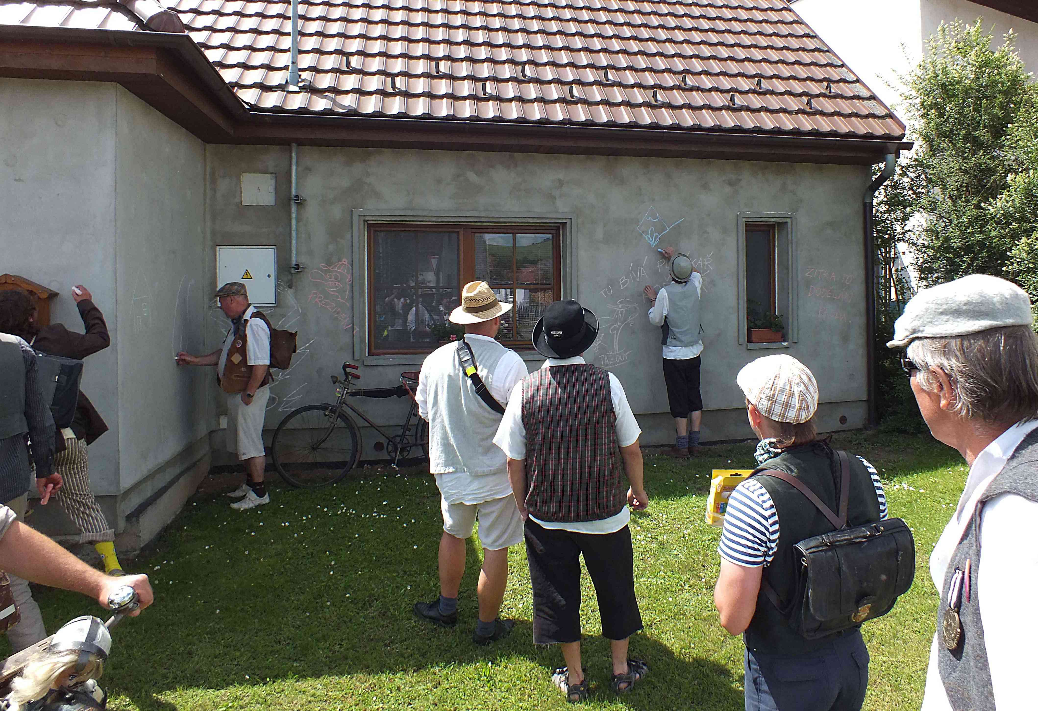 proběhla hodina výtvarky na fasádě domu plečkařa kožkařa. Dalšímu