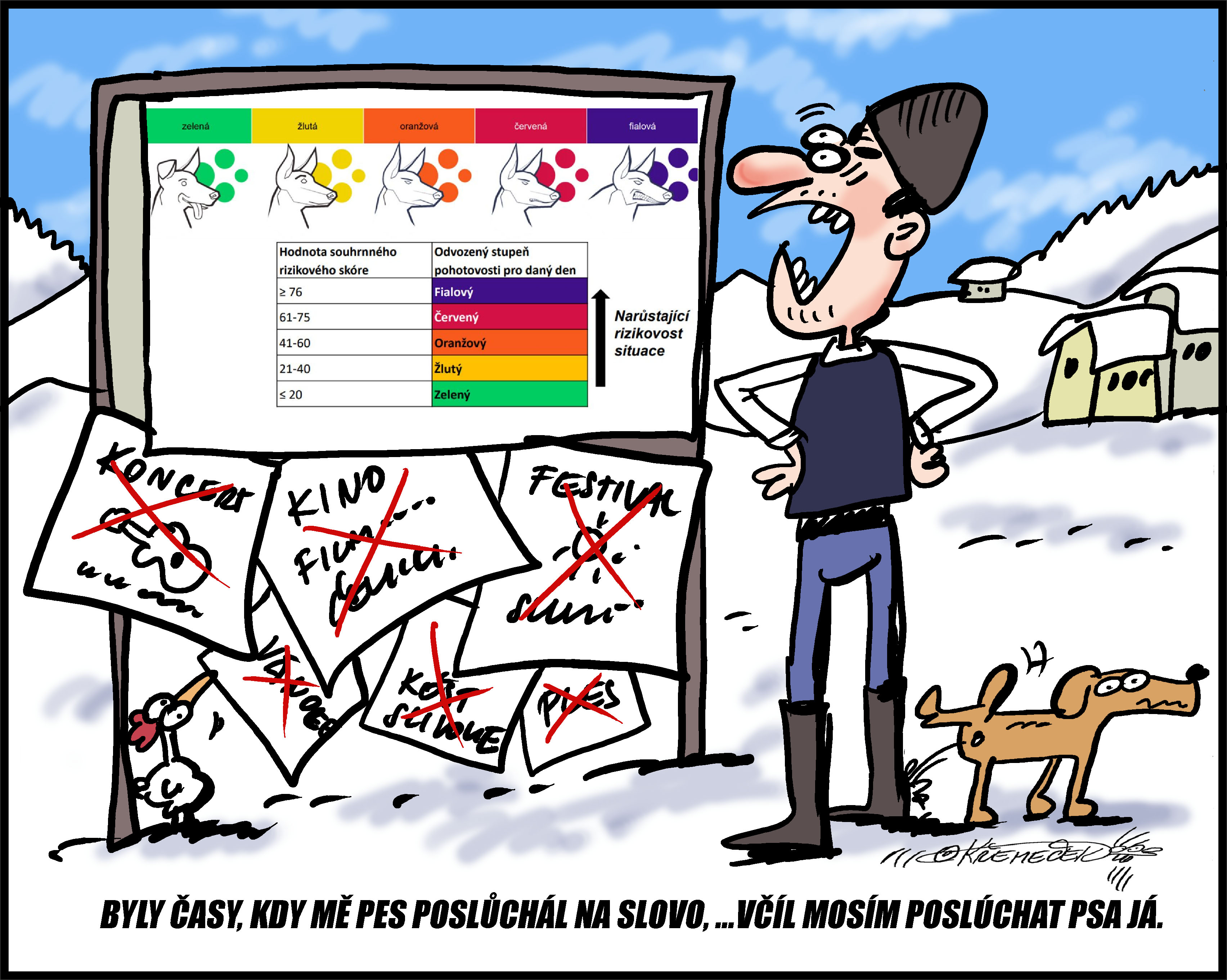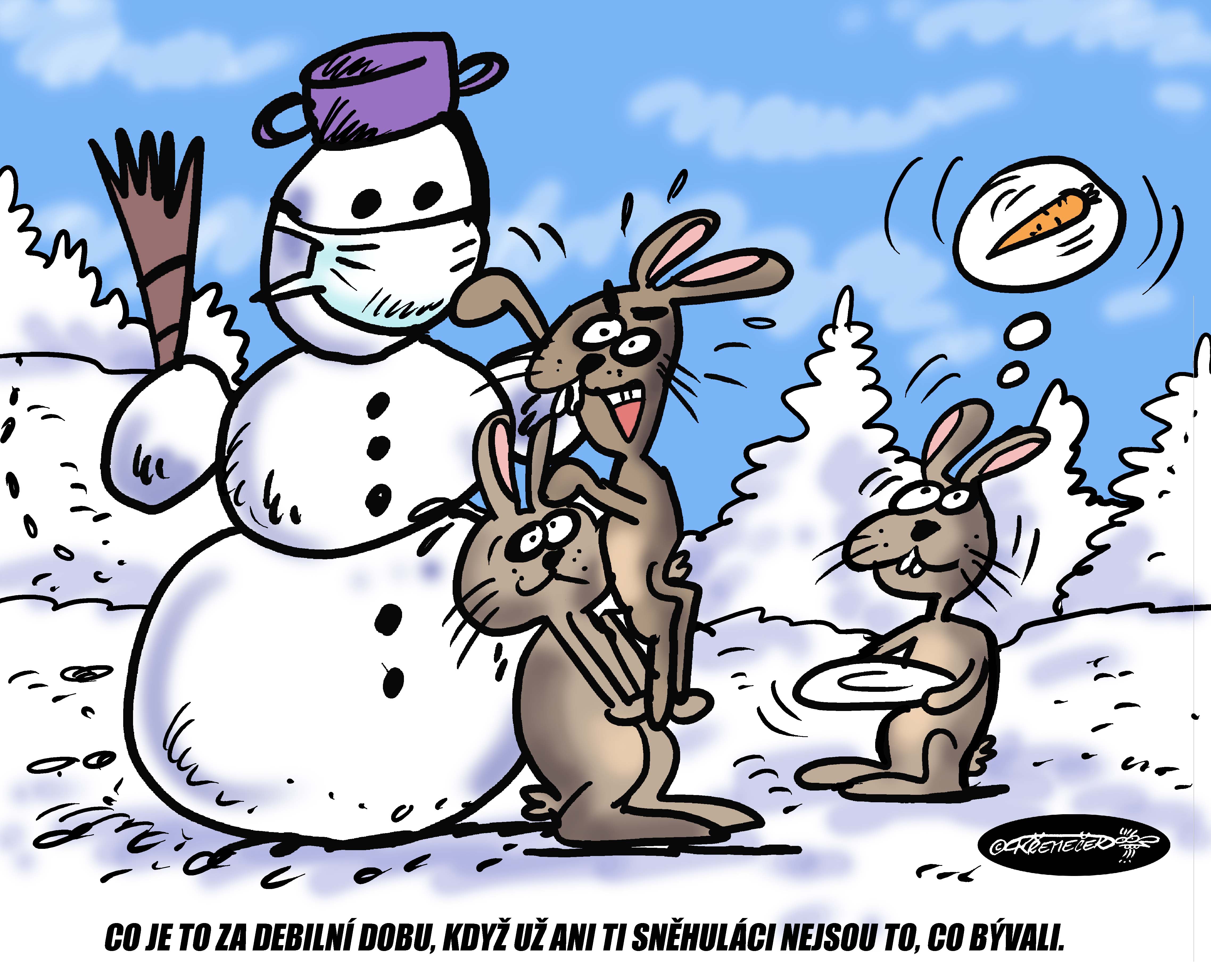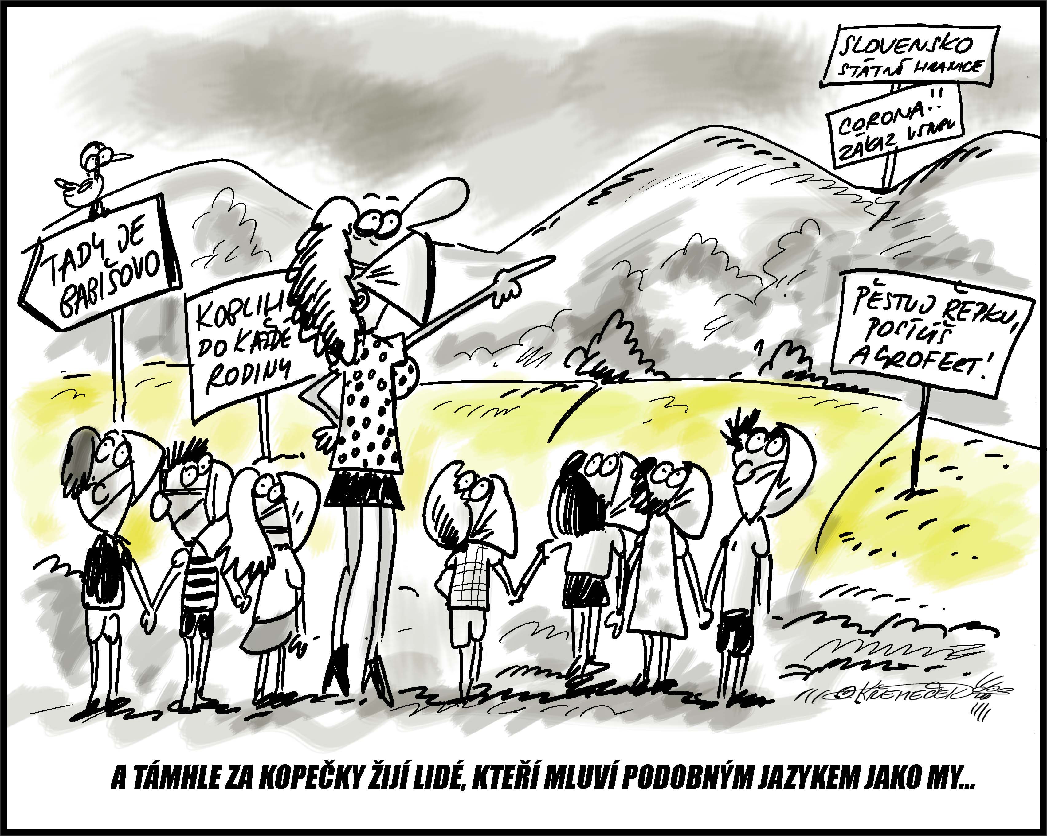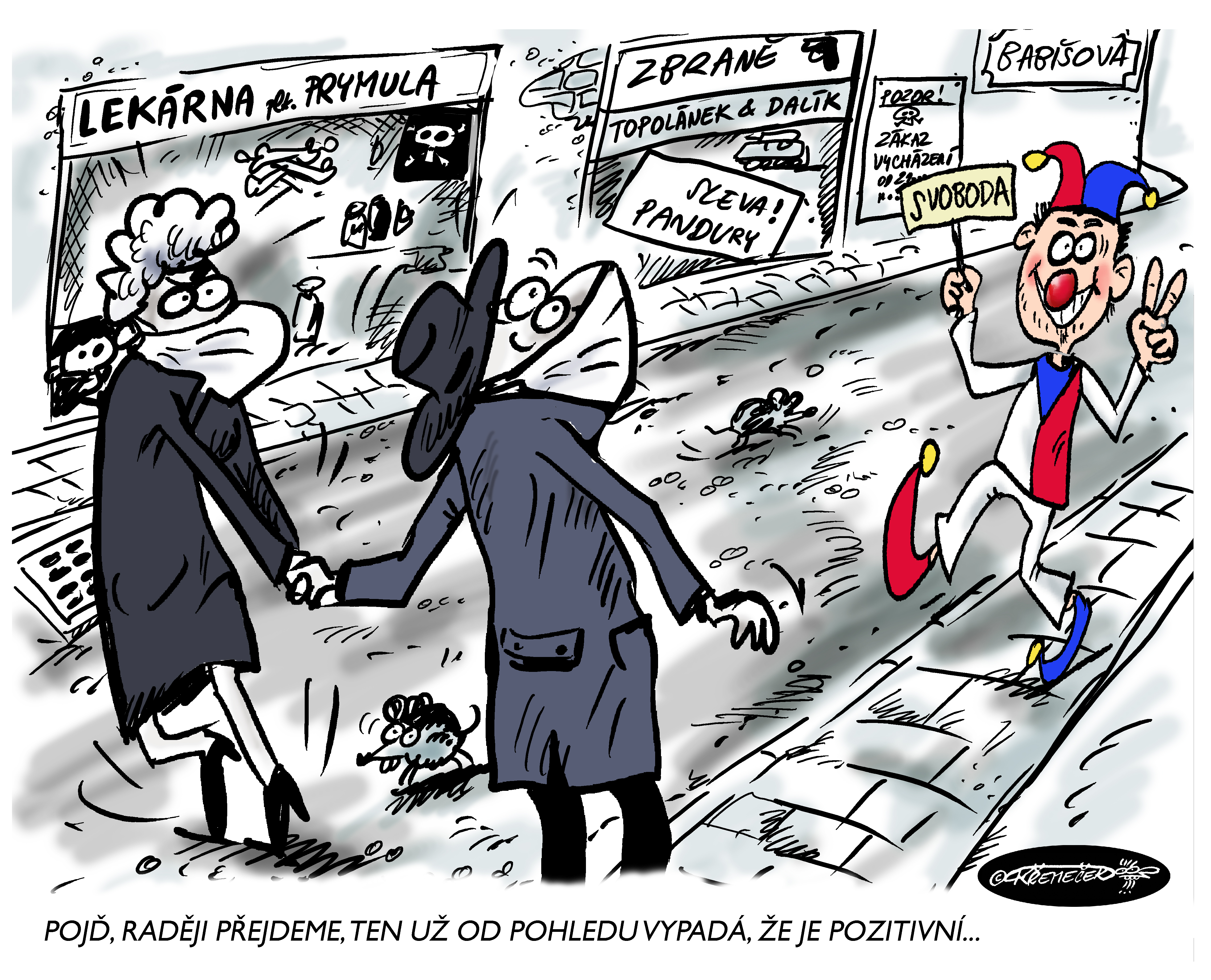 Kreslený humor COVID - koronavir SRANDA - Ivan Křemeček