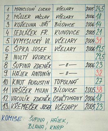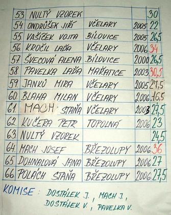 1) Vítěz Jaroslav Mancl – Včelary (slivovice 2005)
