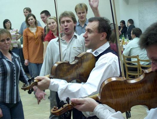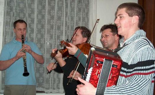 hráli i zpívali jak v malém sále, tak dole v hospodě.