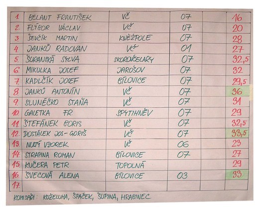 Další aktuální zprávy, finálové pořadí a fotogalerie budou dodány až po úplném vystřízlivění pořadatelské komise.