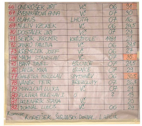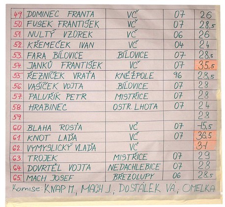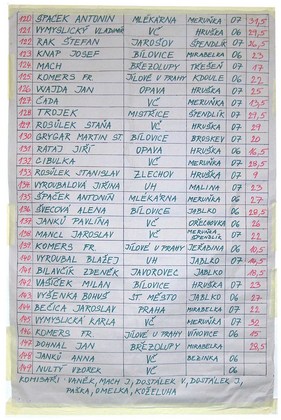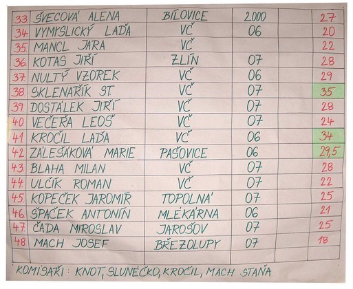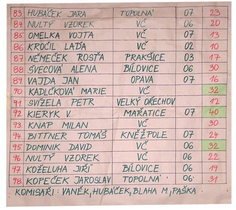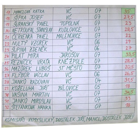 VYSLEDKOVÉ LISTINY – POZNÁMKA:
