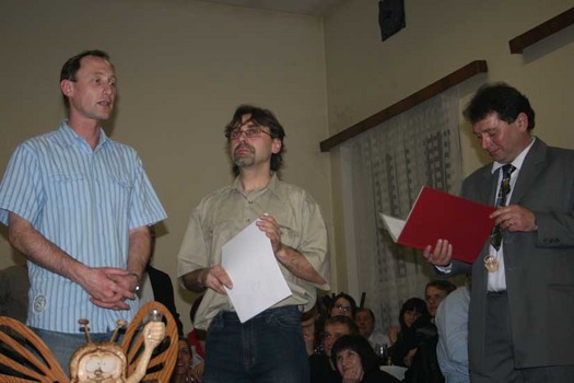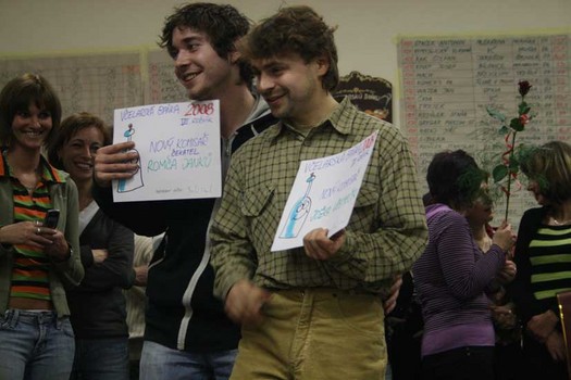 přebrali primáš Včelaranu Jara Hubáček a redaktor DOBRÉHO DNE Pavel